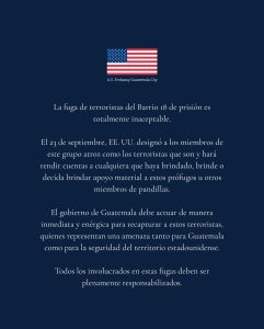 El presidente de Guatemala, Bernardo Arévalo, anunció que el Buró Federal de Investigaciones (FBI) y otras agencias de seguridad de Estados Unidos colaborarán con el gobierno guatemalteco para fortalecer el sistema penitenciario y combatir el crimen organizado. Esta decisión se tomó después de la fuga de 20 pandilleros del Barrio 18 de la cárcel Fraijanes II.